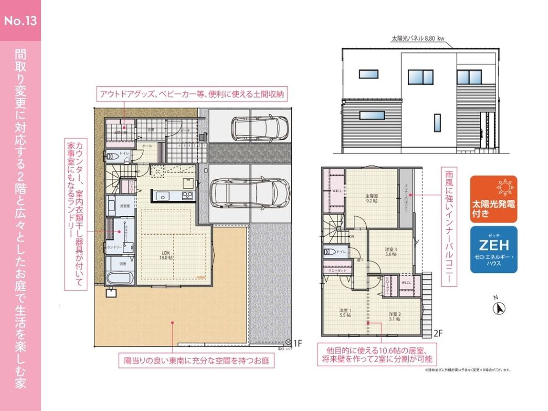 No.13 間取り 4LDK 価格 4950万円 建物面積 106.83m2 土地面積 168.22m2