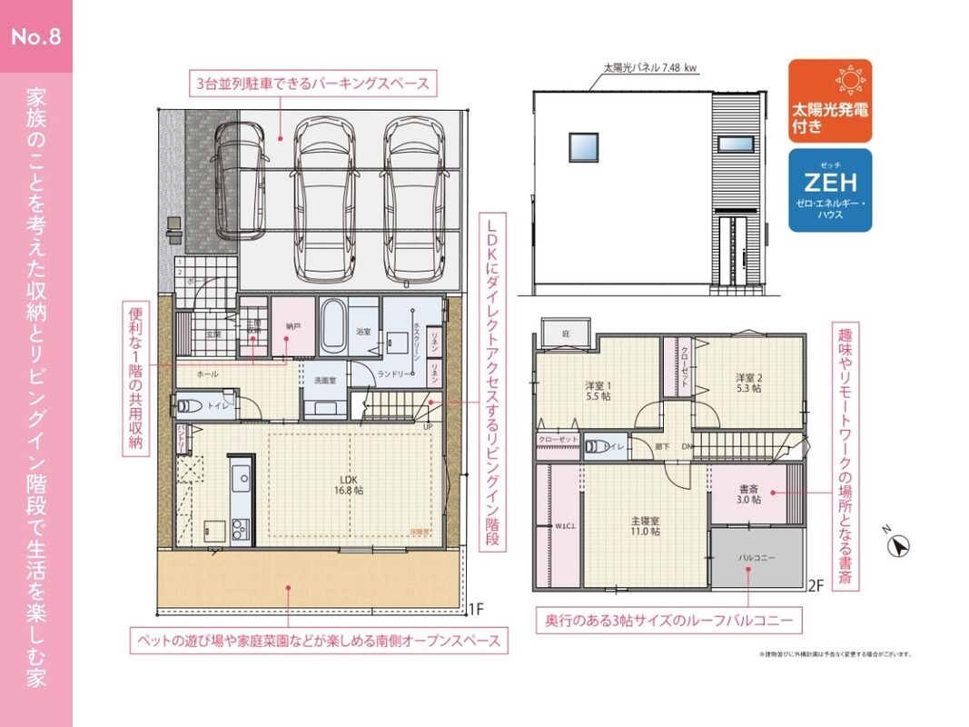 No.8 間取り 3LDK 価格 4290万円 建物面積 106.01m2 土地面積 128.71m2 -
