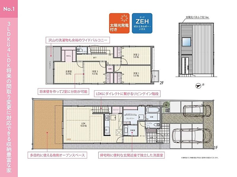 ●家族構成や暮らし方の変化に合わせ、将来的に分割することが可能な可変型間取り