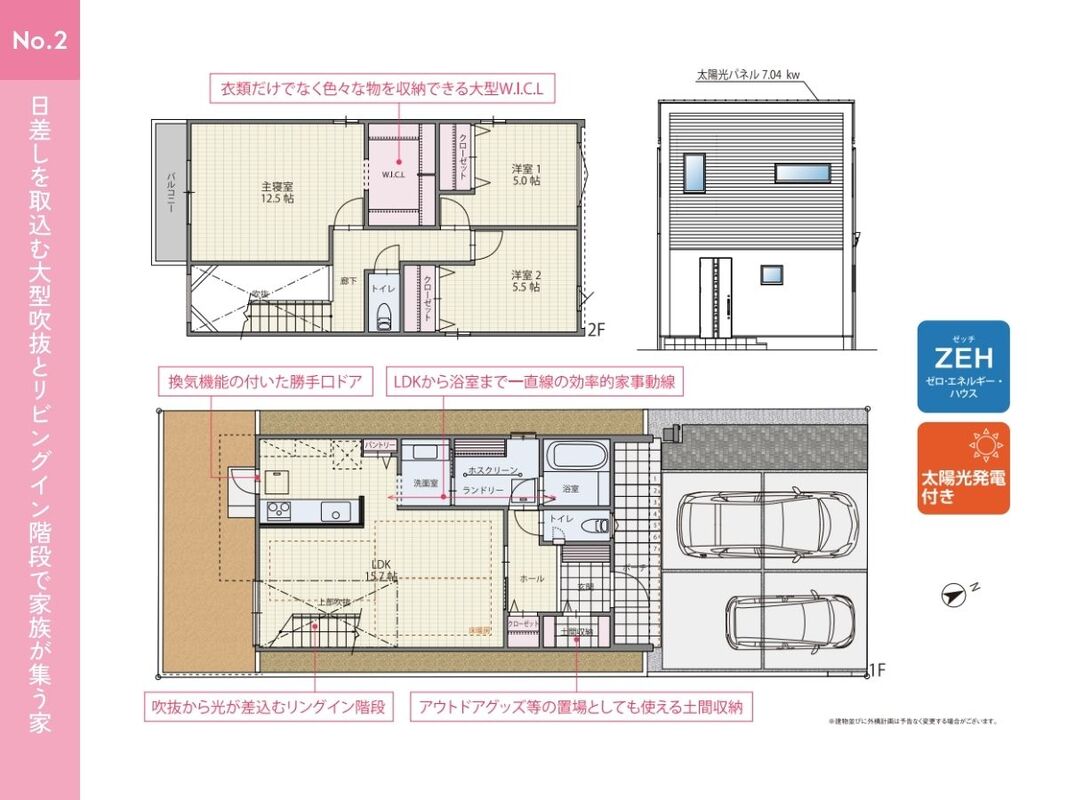 No.2 間取り 3LDK 価格 4990万円 建物面積 100.52m2 土地面積 124.47m2 -