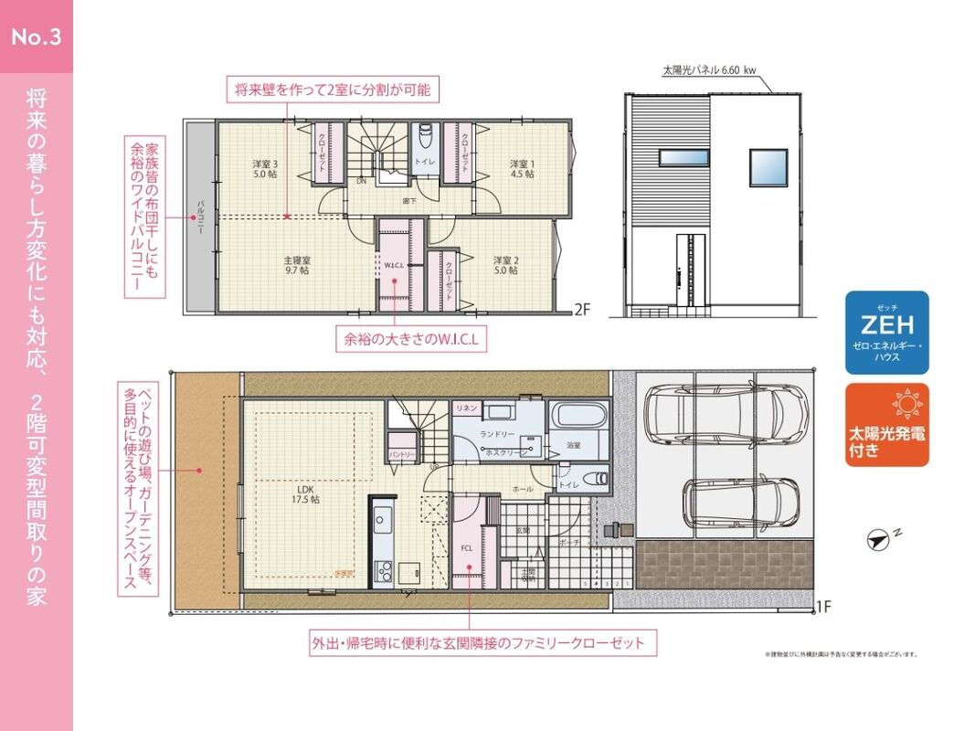 No.3 間取り 4LDK 価格 4990万円 建物面積 105.60m2 土地面積 124.50m2 -
