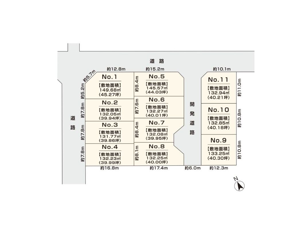 | 駐車場 | - | 道路の幅員 | 北側幅員 約7.5m、西側幅員 約8.0m、開発道路 約6.0m |