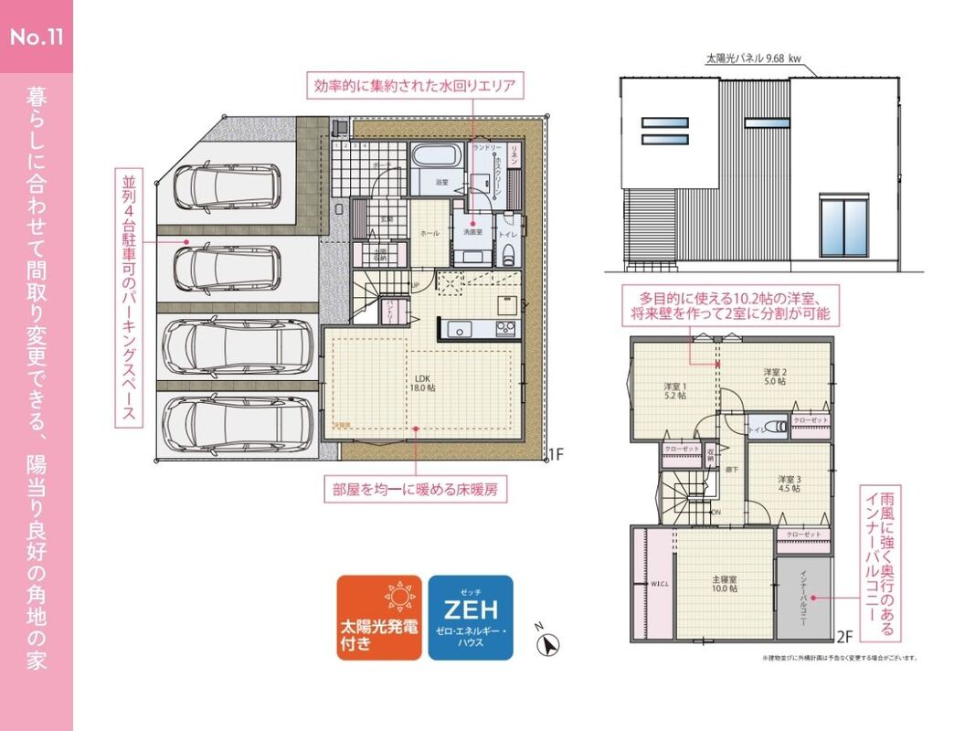 No.11 間取り 4LDK 価格 4350万円 建物面積 105.60m2 土地面積 132.94m2