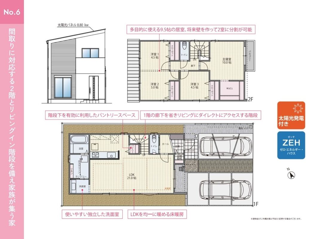 ●家族構成の変化や使い方に合わせて将来的に2部屋に分割することが可能な可変型間取り
