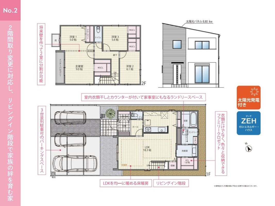 No.2 間取り 4LDK 価格 4190万円 建物面積 108.49m2 土地面積 132.05m2 -