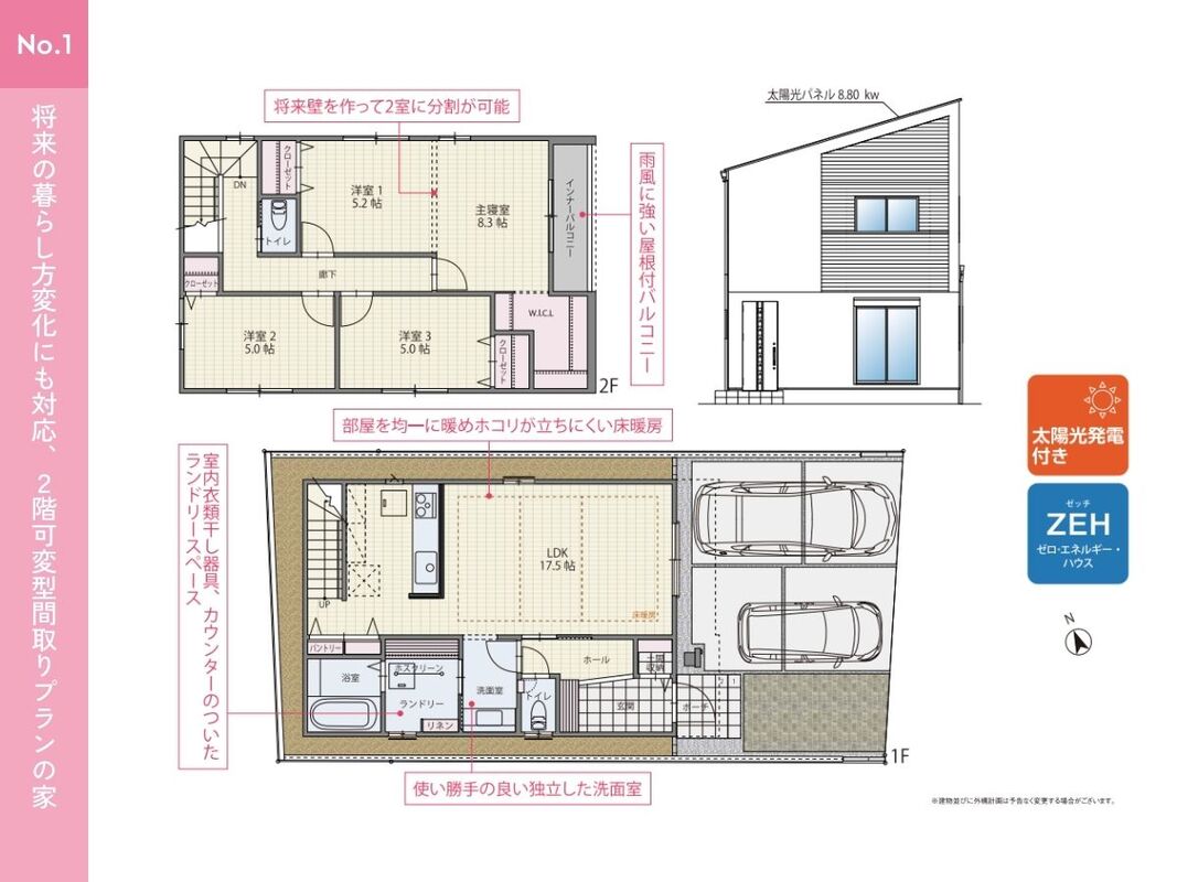 ●家族構成や暮らし方の変化に合わせて将来的に分割することが可能な可変型間取り