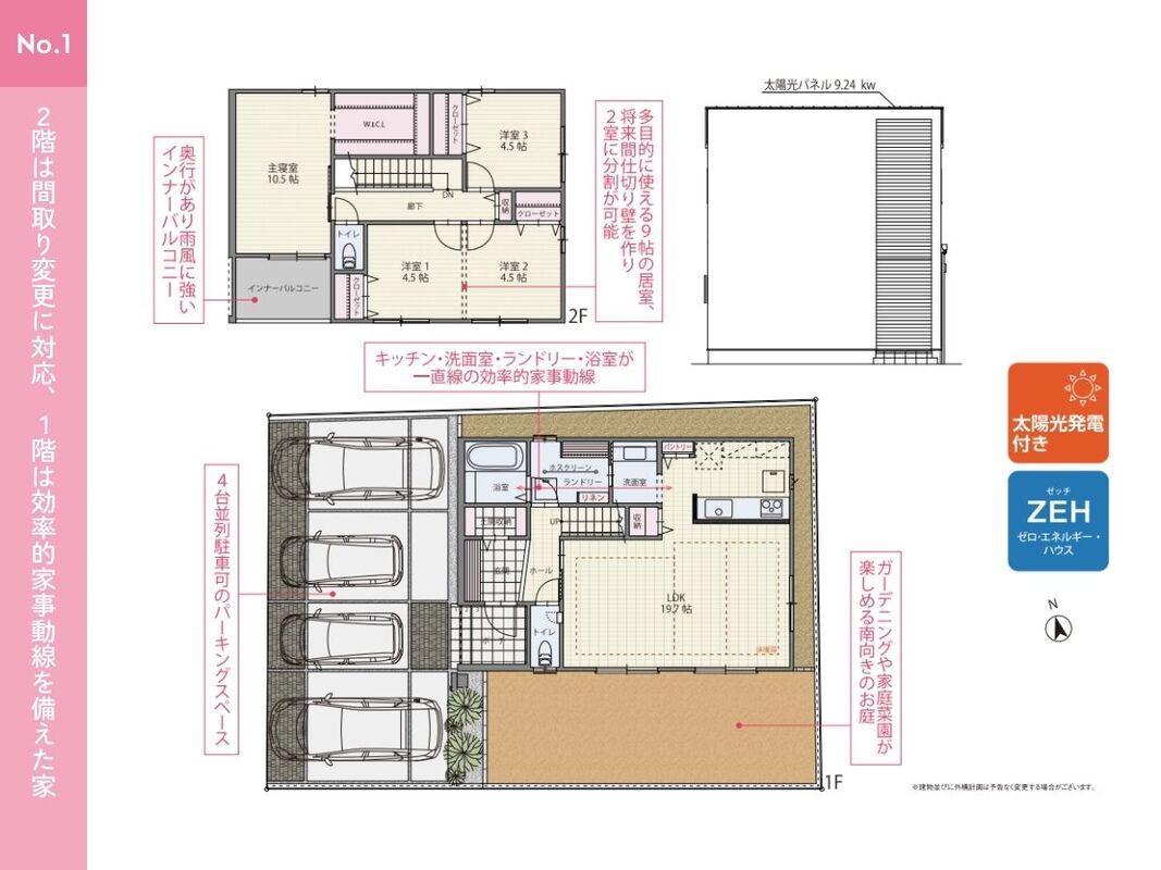 ●並列4台駐車可能!来客時や将来のお子様の駐車スペースとしても最適です