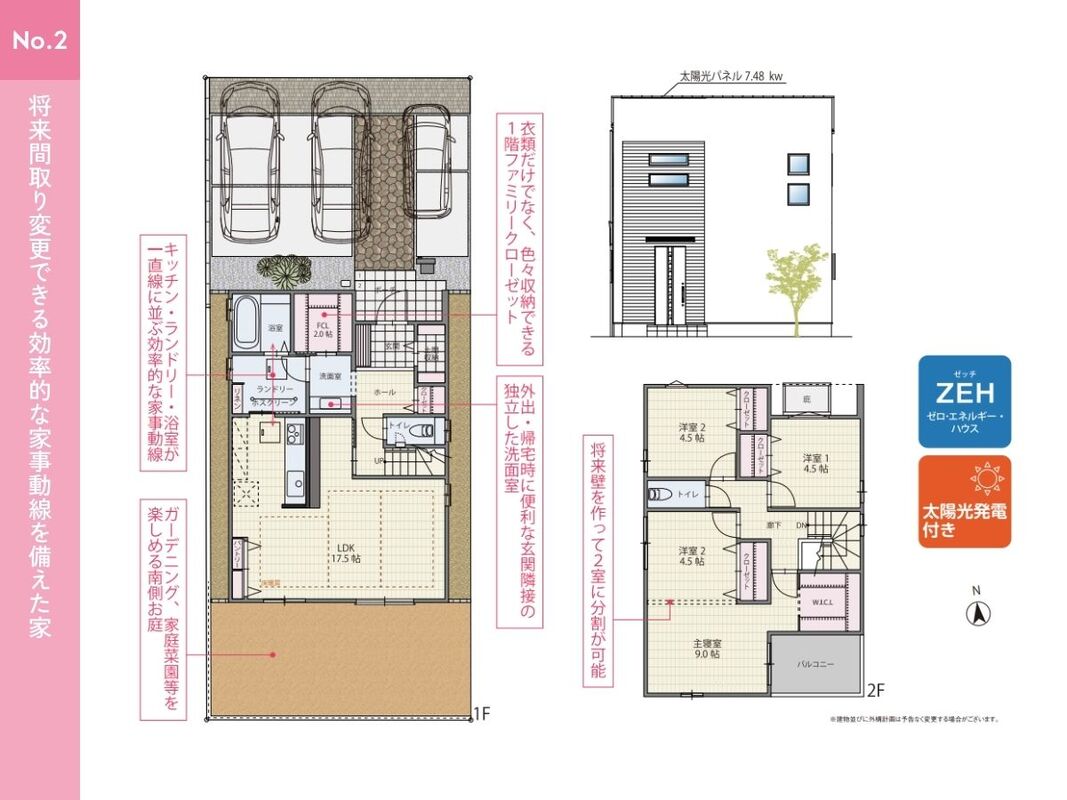 ●並列3台駐車可能 来客時や将来のお子様の駐車スペースとしても便利です