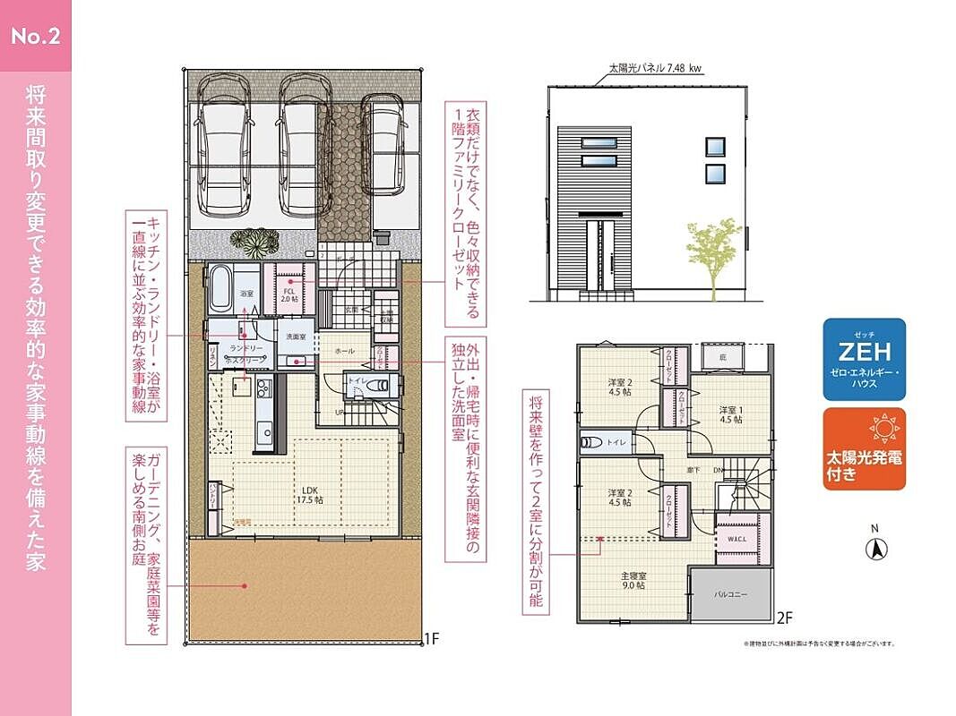●家族構成の変化や使い方に合わせて将来的に2部屋に分割することが可能な可変型間取り
