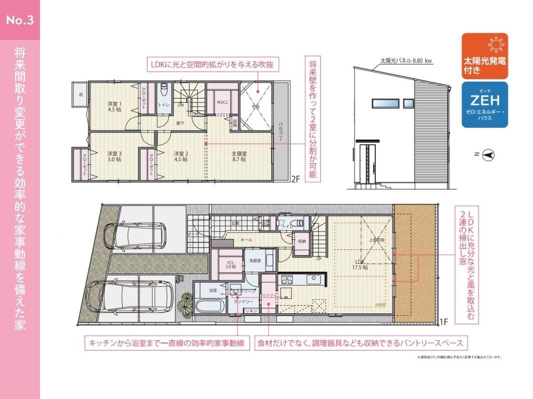 ●家族構成の変化に合わせて将来的に分割することが可能な可変型間取り