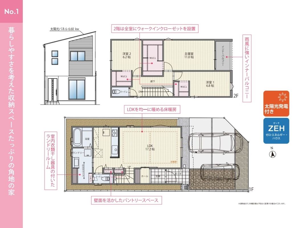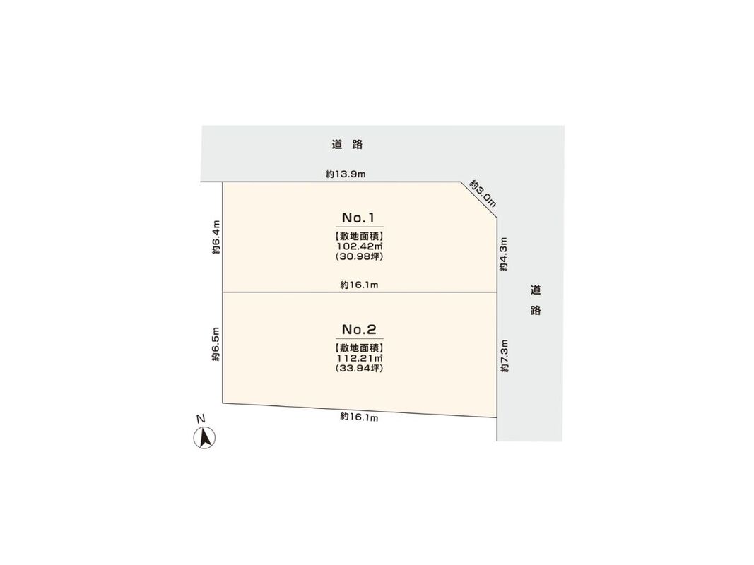 | 建物面積 | 94.62m2・106.01m2 | 土地面積 | 102.42m2・112.21m2 |