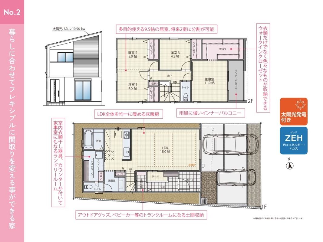 ●家族構成の変化や使い方に合わせて将来的に分割することが可能な可変型間取り