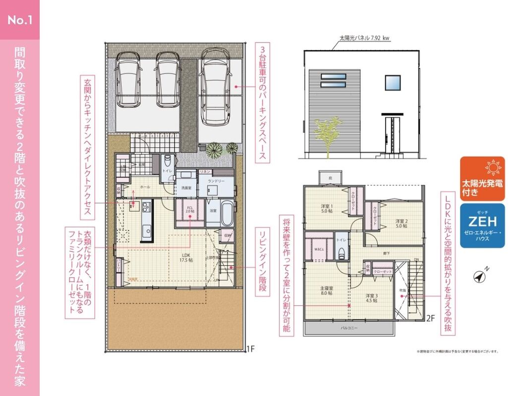 - ※完成予想図やCG合成画像は、門塀・植栽・庭・外観等、実際とは多少異なる場合があります。