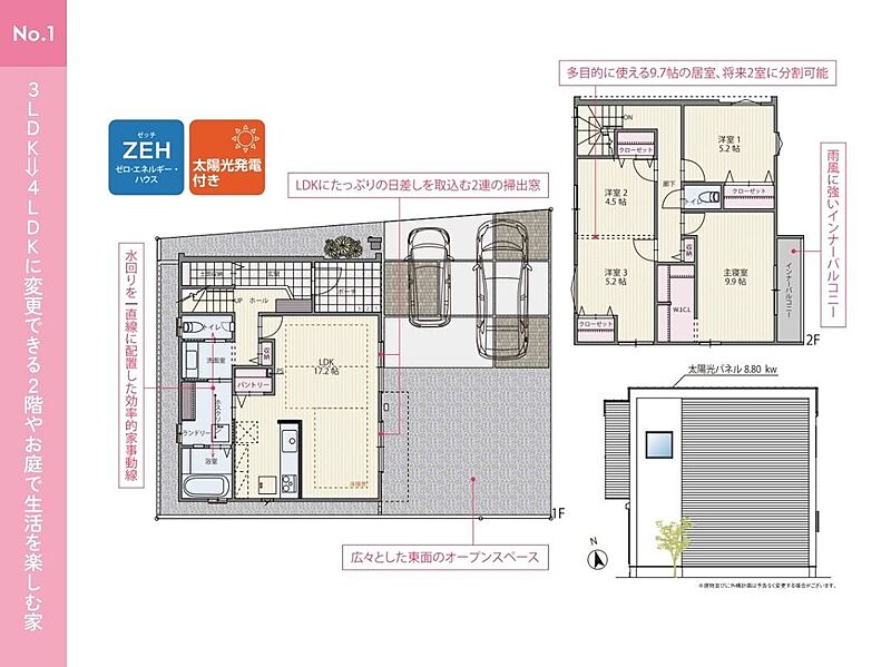 ●家族構成や暮らし方の変化に合わせ、将来的に2部屋に分割可能な居室あり