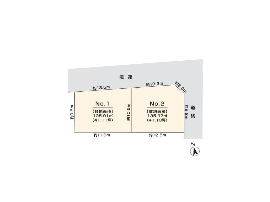 | 建物面積 | 107.66m2・105.60m2 | 土地面積 | 135.91m2・135.97m2 |