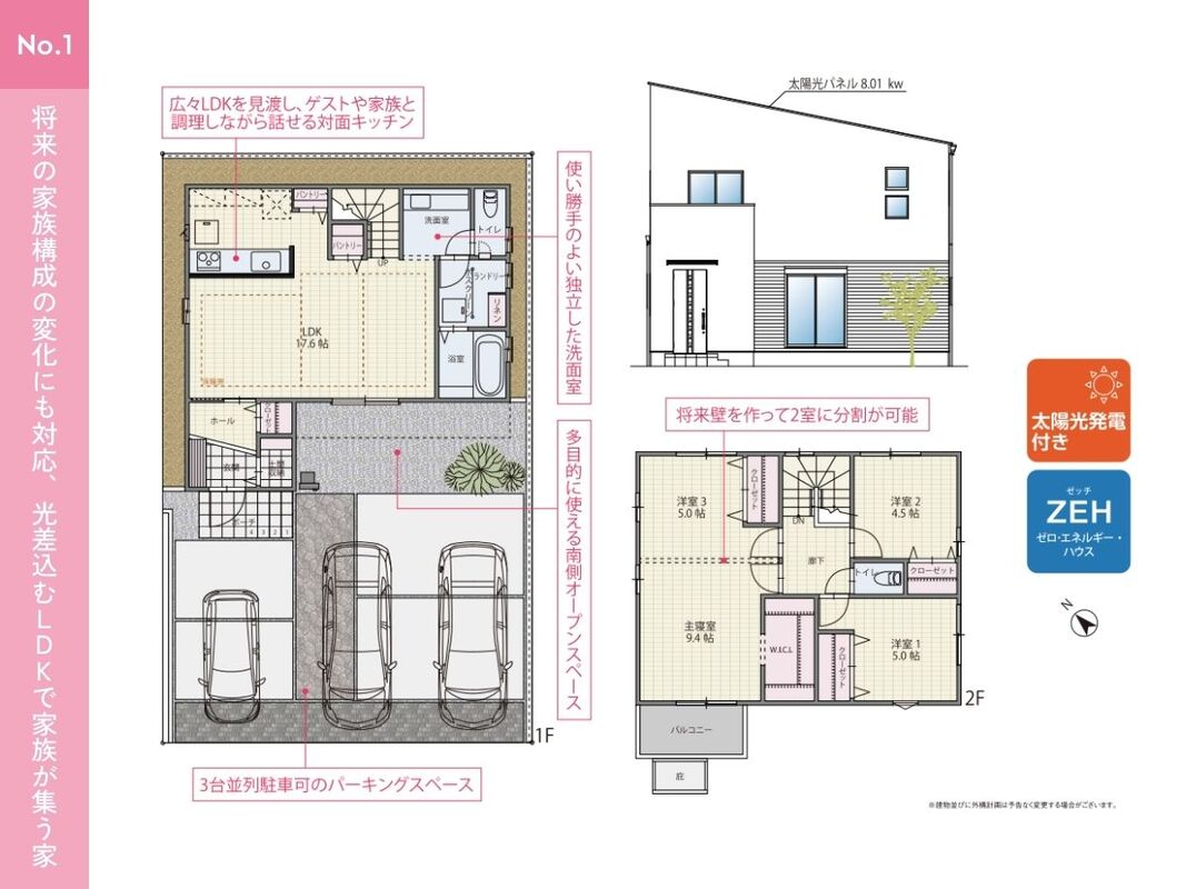 ●家族構成や暮らし方の変化に合わせ、将来的に分割することが可能な可変型間取り