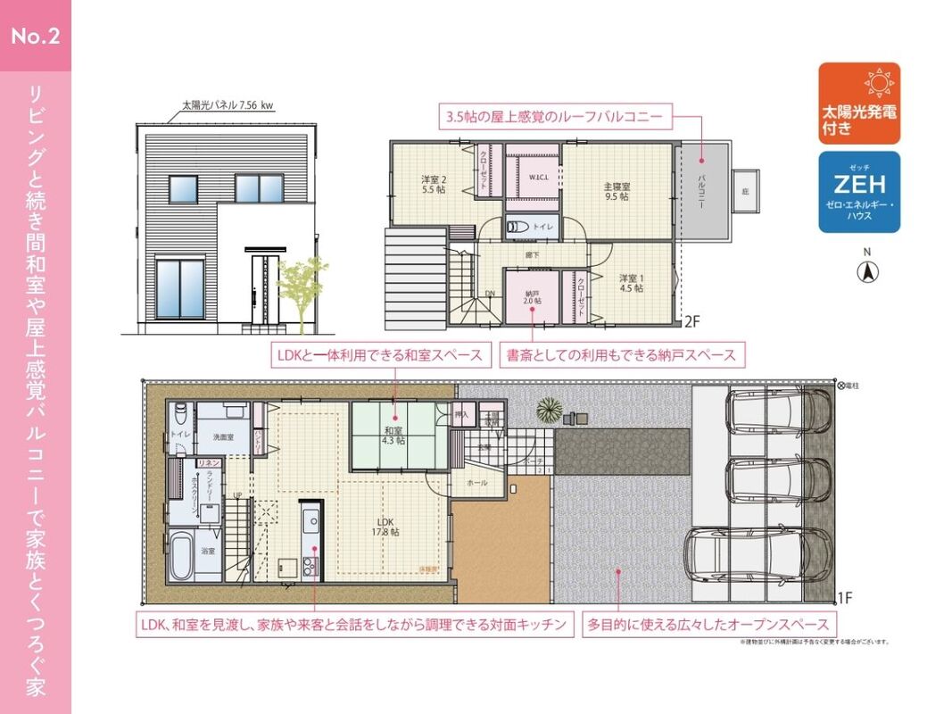 ●並列3台駐車可能 来客時や将来のお子様の駐車スペースとしてもご活用いただけます