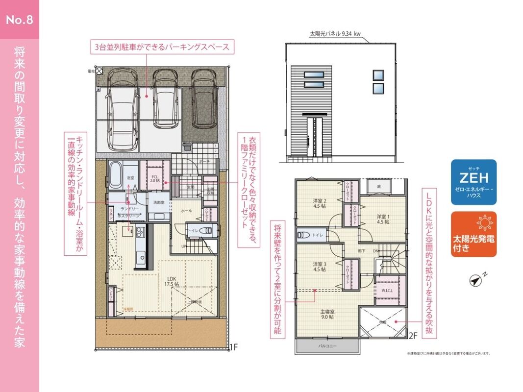 ●並列3台駐車可能!来客時や将来のお子様の駐車スペースにもご活用いただけます