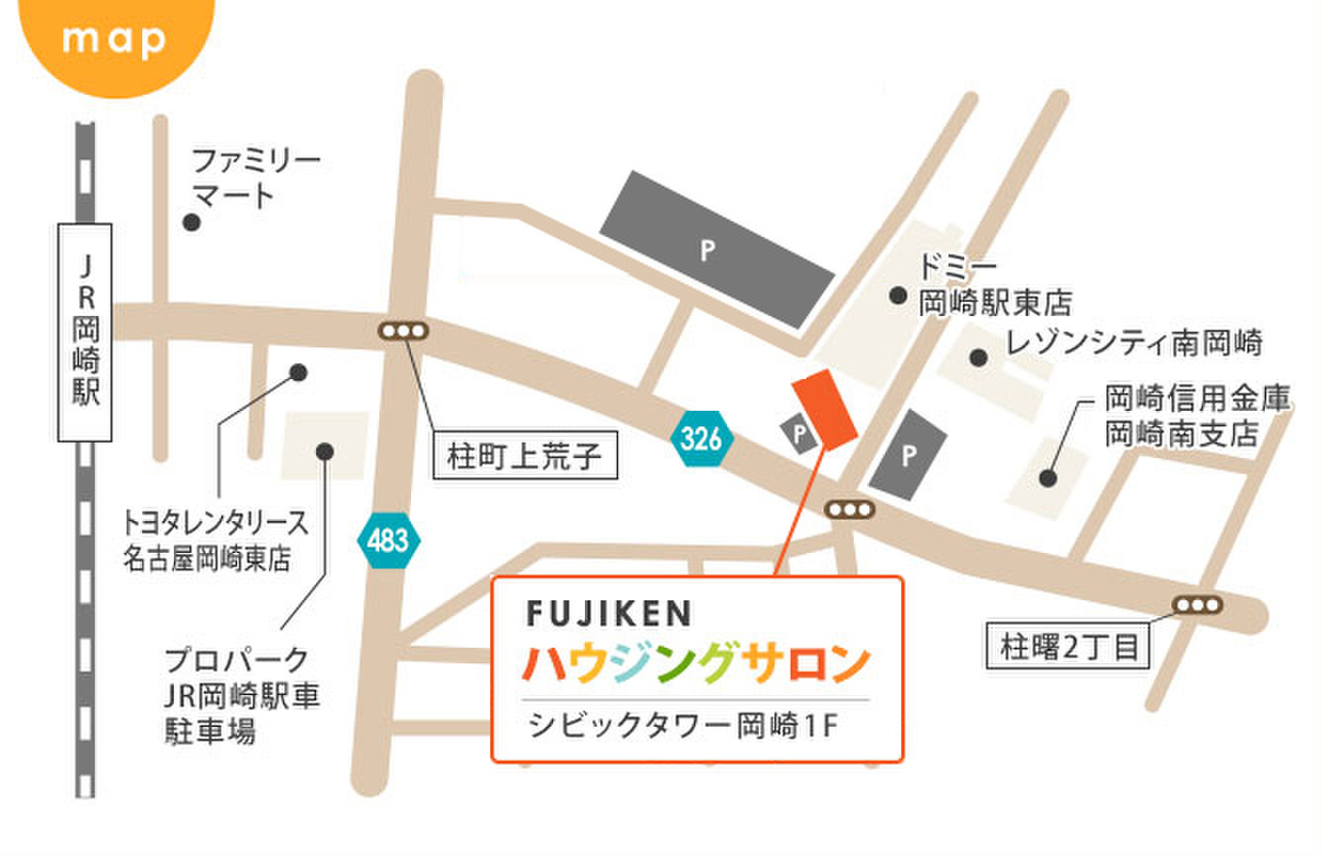 JR東海道本線「岡崎」駅 徒歩26分~27分 愛知環状鉄道「岡崎」駅 徒歩26分~27分 名鉄バス「赤渋口」停 徒歩4分 |