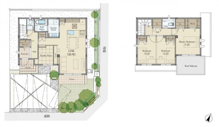 | 建物面積 | 102.92m2~105.25m2 | 土地面積 | 156.44m2~157.57m2 |