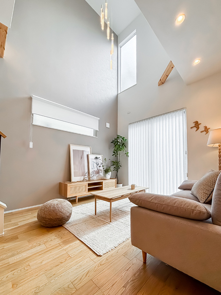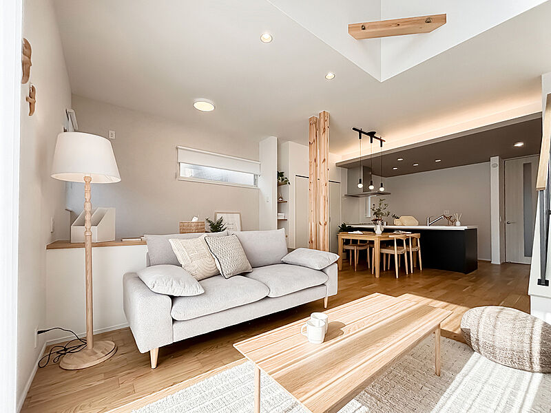 暖かな陽光と縦へと広がる開放感を創出する吹き抜け天井を全邸に採用。
