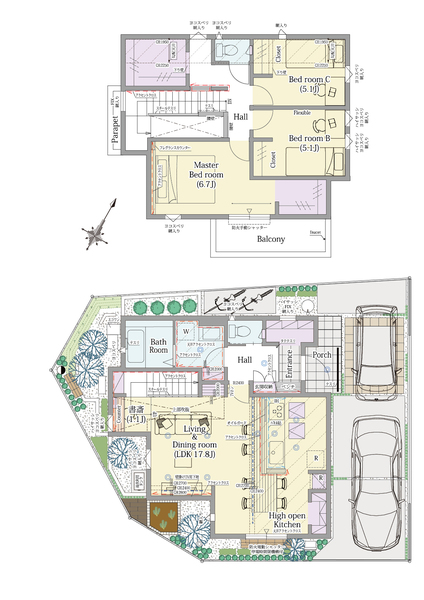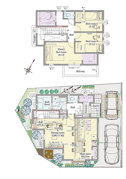 - ※完成予想図やCG合成画像は、門塀・植栽・庭・外観等、実際とは多少異なる場合があります。