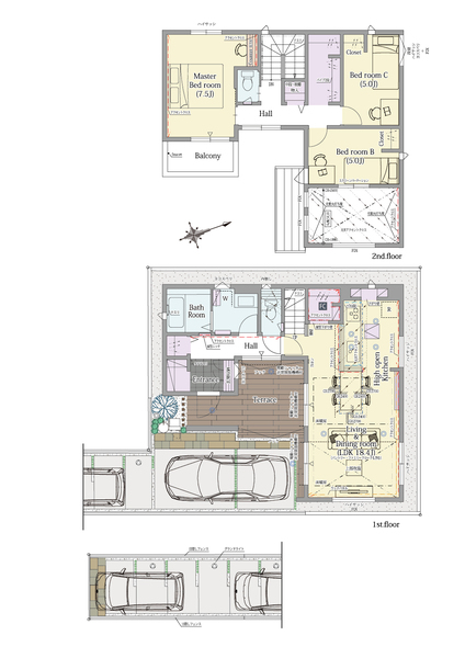 - ※完成予想図やCG合成画像は、門塀・植栽・庭・外観等、実際とは多少異なる場合があります。