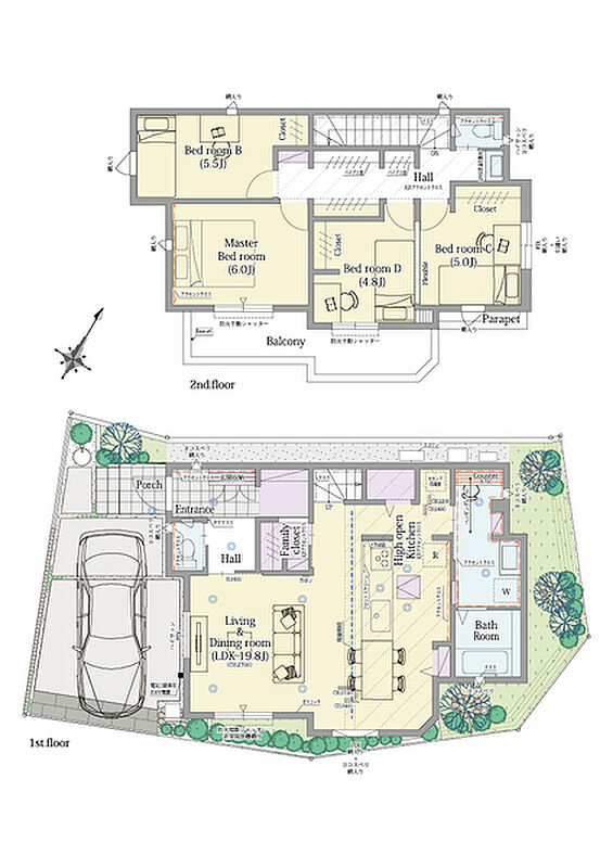 - ※完成予想図やCG合成画像は、門塀・植栽・庭・外観等、実際とは多少異なる場合があります。