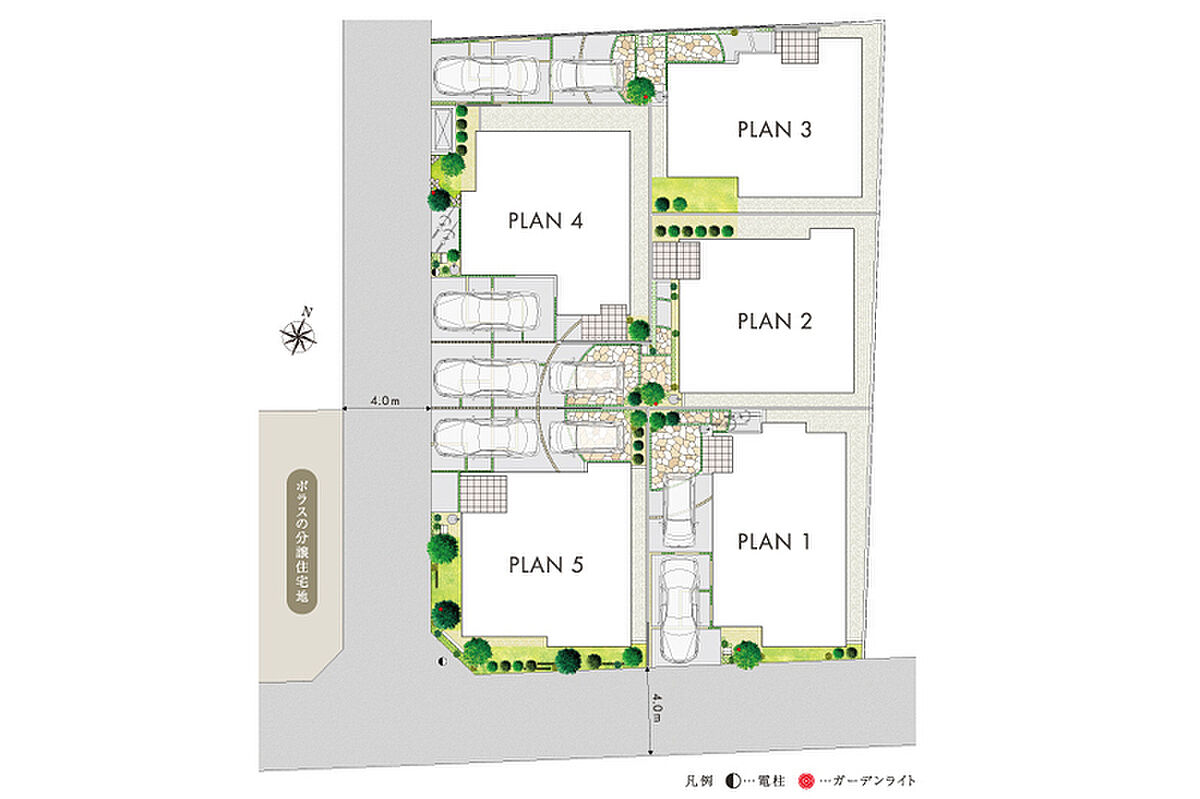 魅力1 陽光と開放感に満ちた、全5邸の美しい街並み