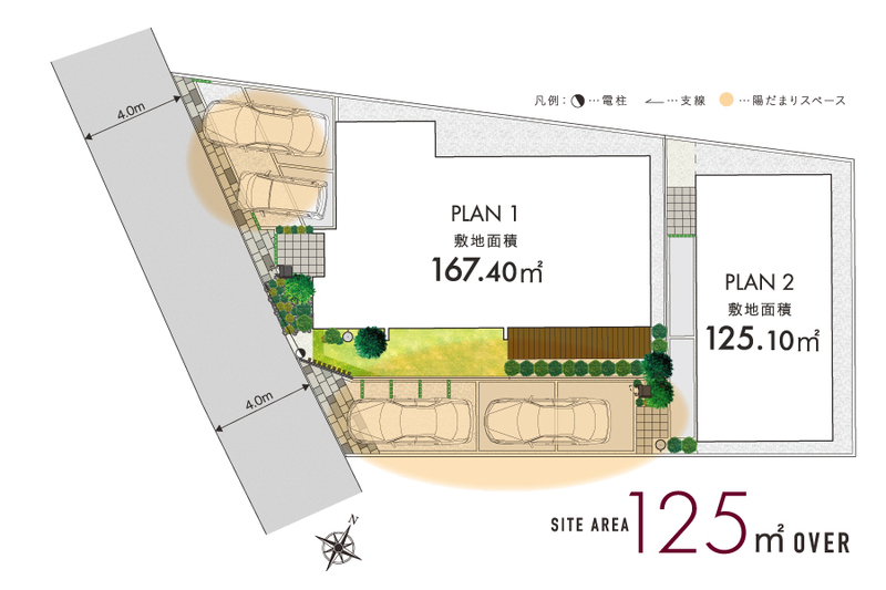 | 建物面積 | 96.68m2~118.83m2 | 土地面積 | 125.1m2~167.4m2 / 私道負担なし |