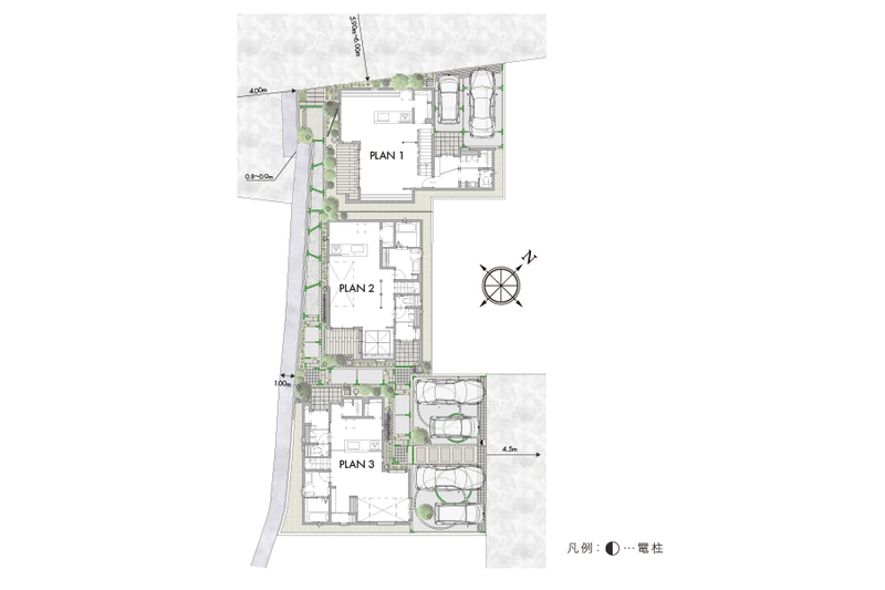 | 建物面積 | 97.39m2~106.12m2 | 土地面積 | 116.7m2~133.36m2 / 私道負担なし |