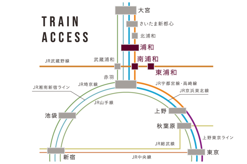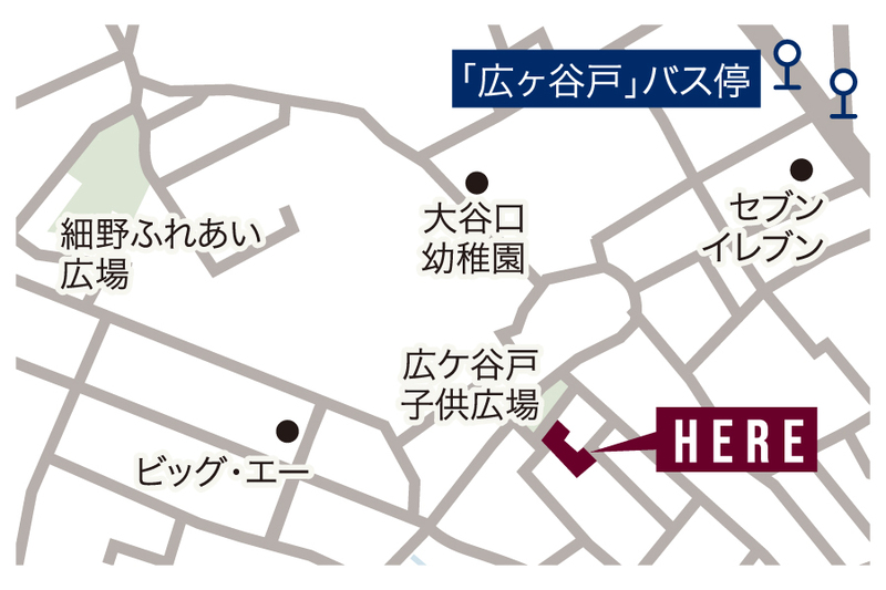 JR東北本線「浦和」駅 バス16分 広ケ谷戸バス停 徒歩5分 JR武蔵野線「南浦和」駅 徒歩28分 JR武蔵野線「東浦和」駅 バス14分 広ケ谷戸バス停 徒歩5分 |
