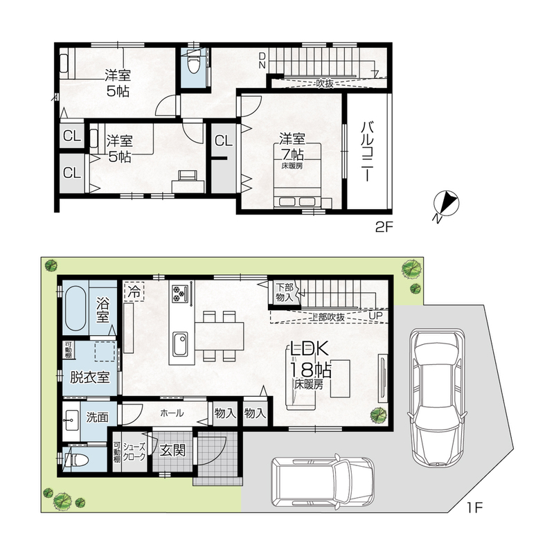 ・LDKはI型×リビング階段付近が吹抜で開放的。