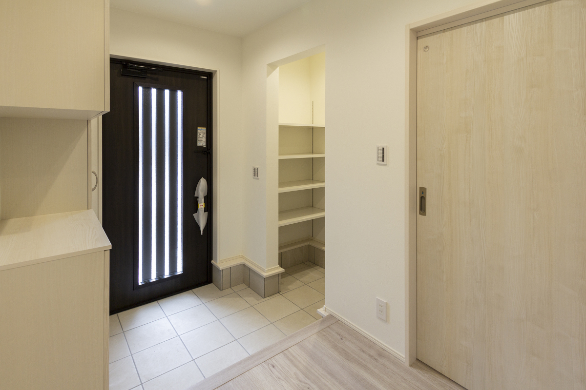 シューズボックスに加え土間収納を備えることで、いつでも片付いた気持ちの良いエントランスがお出迎え。洗面脱衣室やホール、リビングなど、暮らしに寄り添う収納設計です。