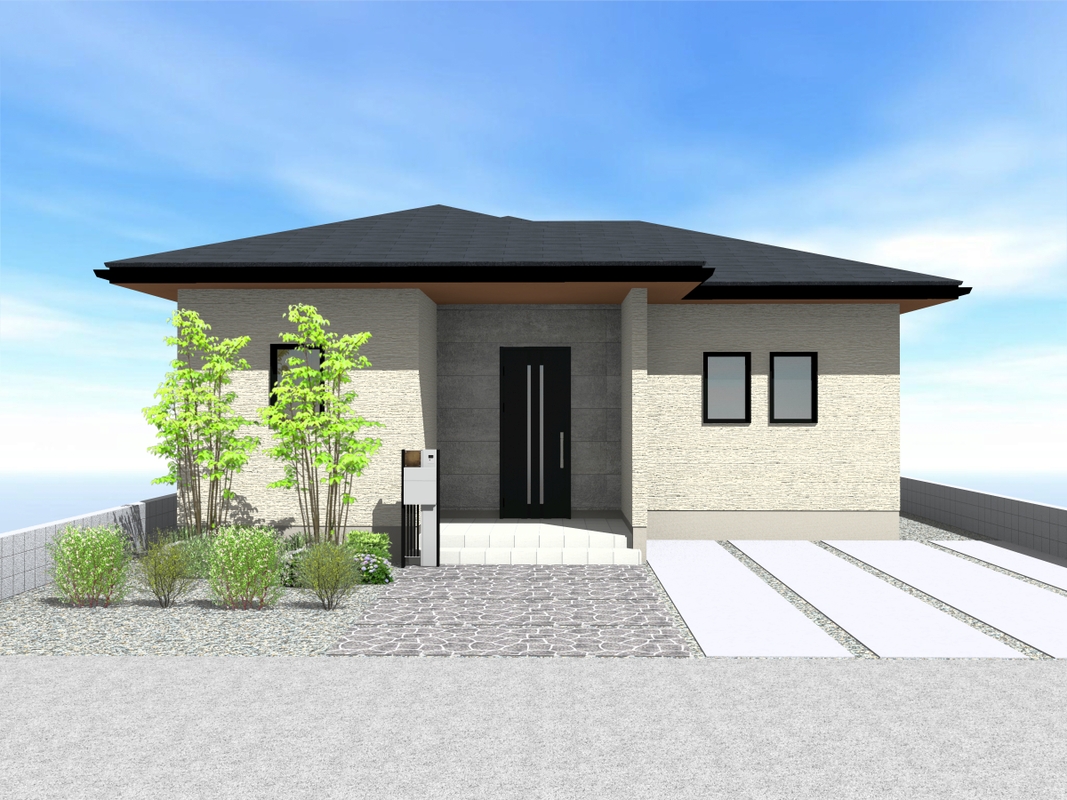 ワンフロアでコンパクトに暮らしが完結する平屋!敷地面積を活かした南庭や車2台駐車可能(車種による)な駐車スペースなどを備え、アウトドアも楽しめるゆとりある暮らしが叶います。