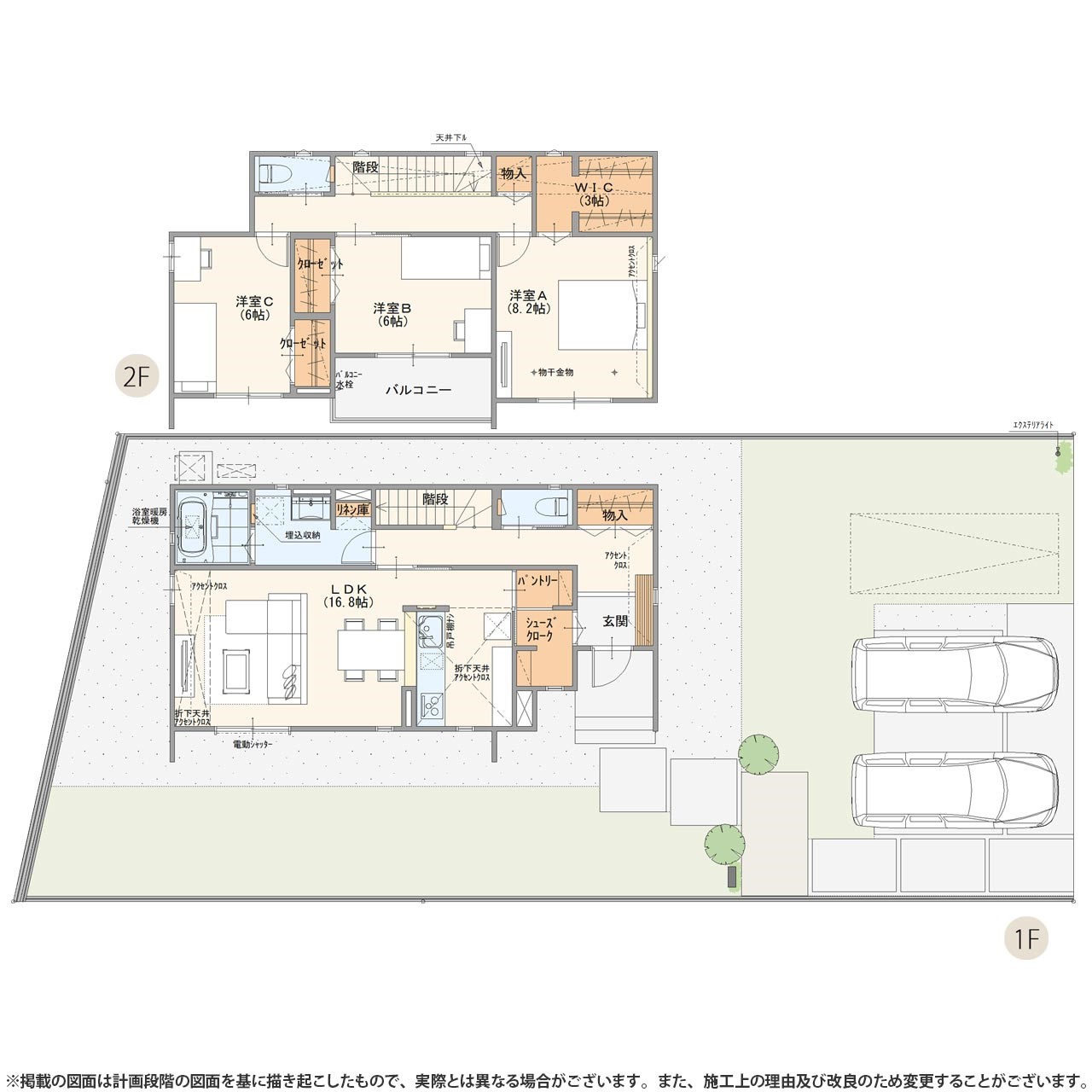 - ※完成予想図やCG合成画像は、門塀・植栽・庭・外観等、実際とは多少異なる場合があります。