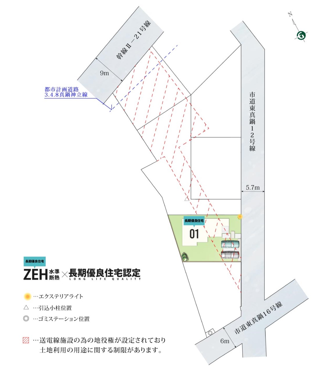 地域指定等:建築基準法第22条区域、景観法 ※各号地の上空を電線が通過します。 ※当該地目(田)については、建物完成時までに地目変更を行い宅地にいたします。 ※各宅地の一部について送電線の為の地役権が設定されており、土地利用の用途に関する制限があります。 ※道路幅員に関しては、接道状況により数値が異なる場合がございますのでご了承下さい。 ※更新・メンテナンス中に予約・売約済の場合はご容赦願います。 ※掲載の図面は計画段階の図面を基に描き起こしたもので、実際とは異なる場合がございます。また、施工上の理由及び改良のため変更することがございます。 ※住宅設備機器については号地によりメーカー及び仕様が変更となる場合がございます。 |