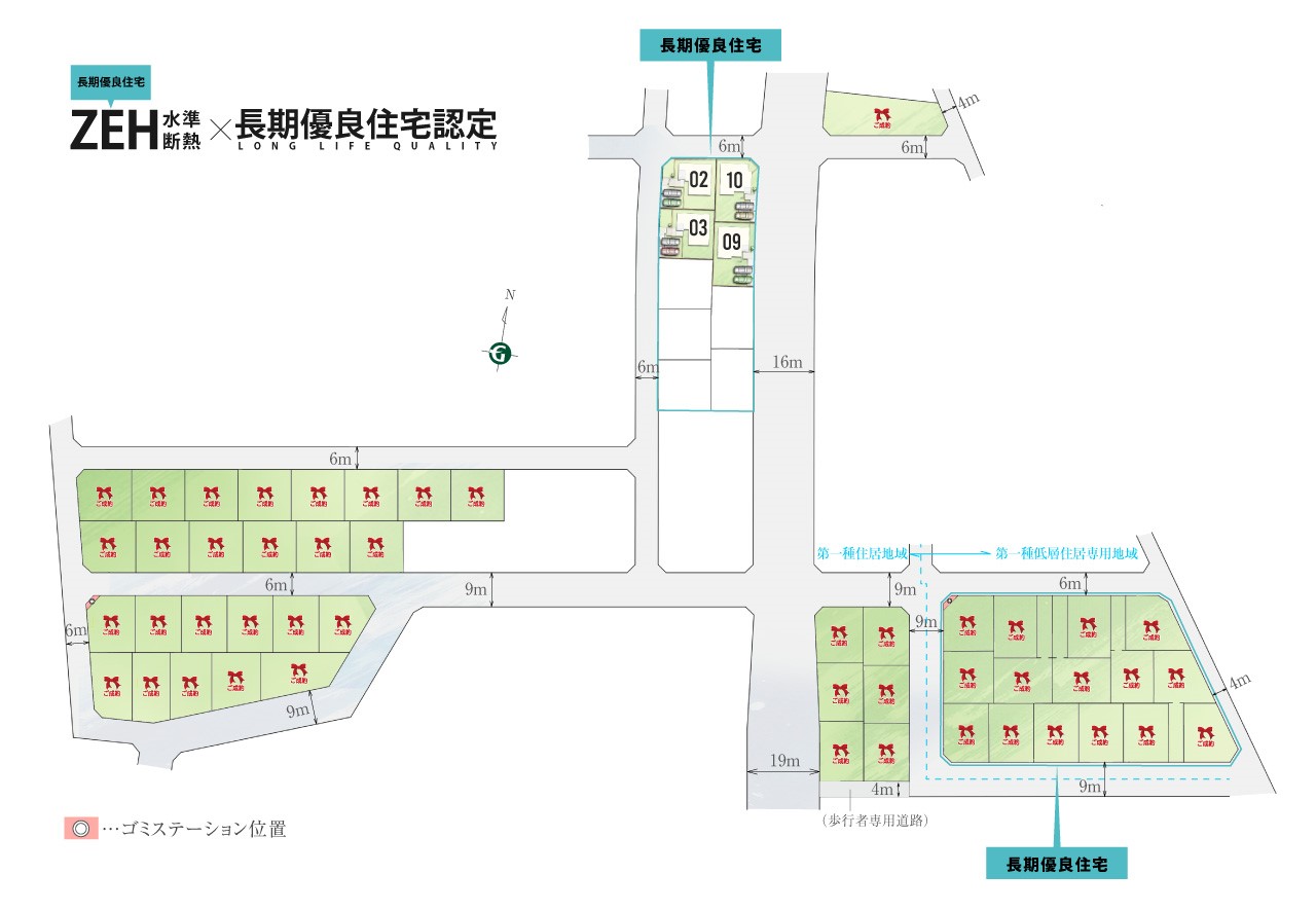 ※保留地:研究学園都市計画事業上河原崎・中西特定土地区画整理事業A16街区1画地(保留地)外 ※地域指定/有「建築基準法第22条区域」「景観法」「上河原崎・中西地区地区計画(沿道住宅A地区)」 ※各号地の上空を電線が通過します。 ※表示価格の他に、諸経費等が別途必要になります。 ※掲載の図面は計画段階の図面を基に描き起こしたもので、実際とは異なる場合がございます。また、施工上の理由及び改良のため変更することがございます。 ※住宅設備機器については号地によりメーカー及び仕様が変更となる場合がございます。 ※道路幅員に関しては、接道状況により数値が異なる場合がございますのでご了承下さい。 |