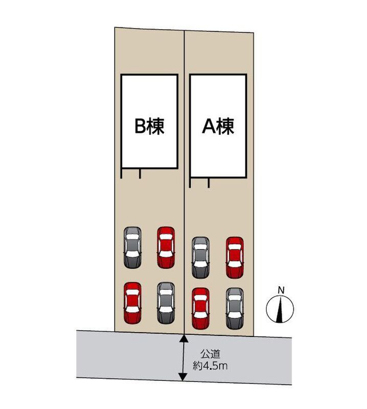 | 駐車場 | 3台 ~ 4台 | 道路の幅員 | 南側4.5m |
