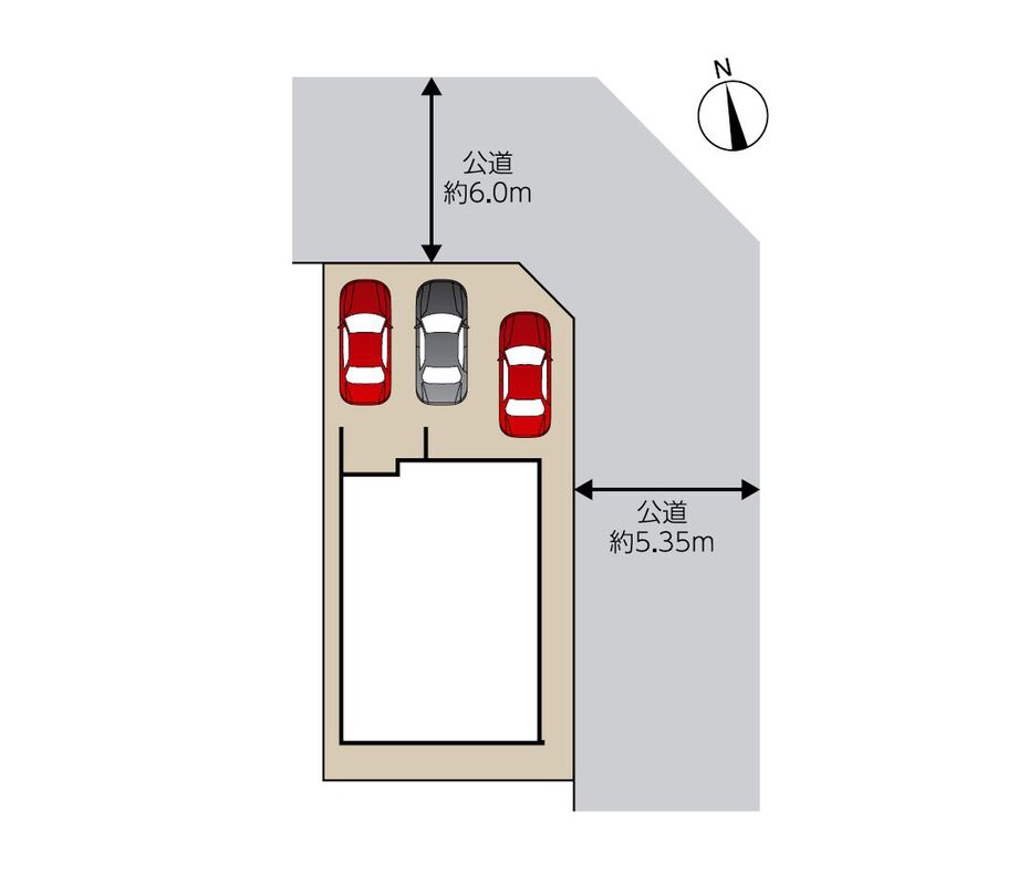 | 駐車場 | 2台 ~ 3台 | 道路の幅員 | 北側6.0m、東側5.3m |