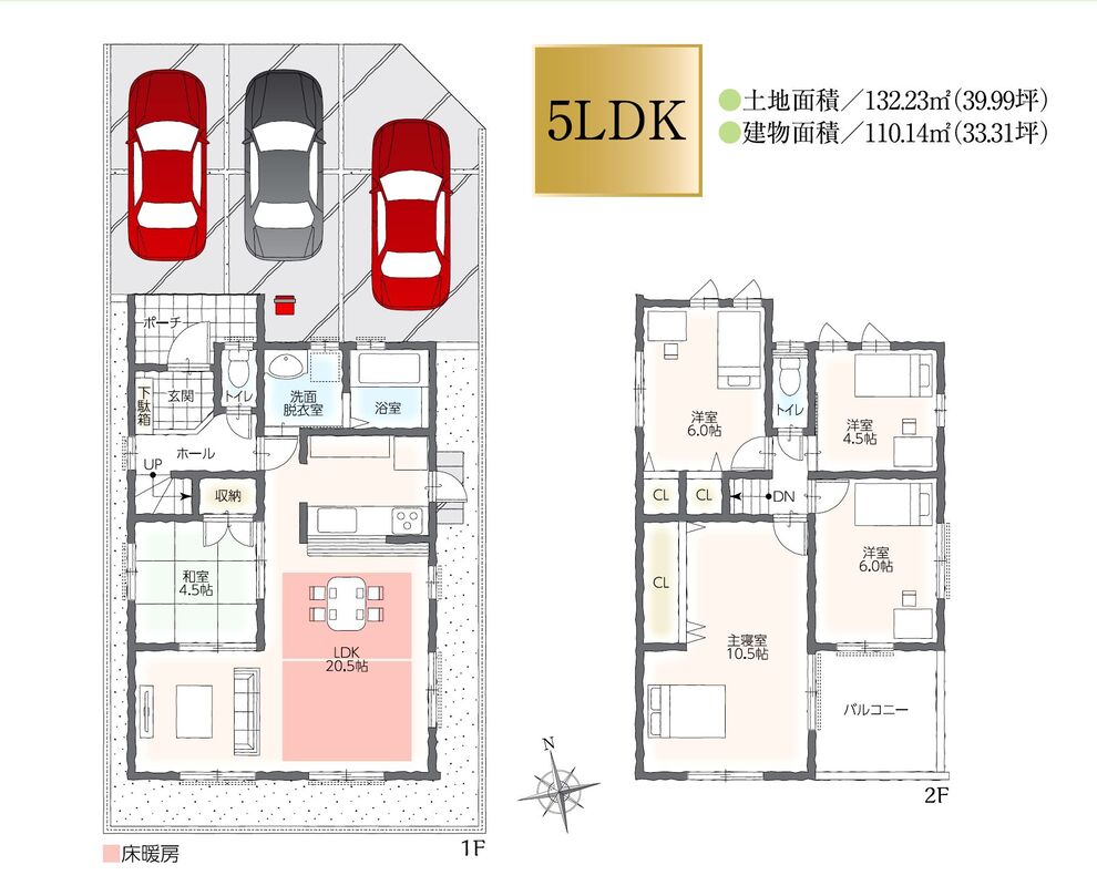 | 建物面積 | 110.14m2 | 土地面積 | 132.23m2 |