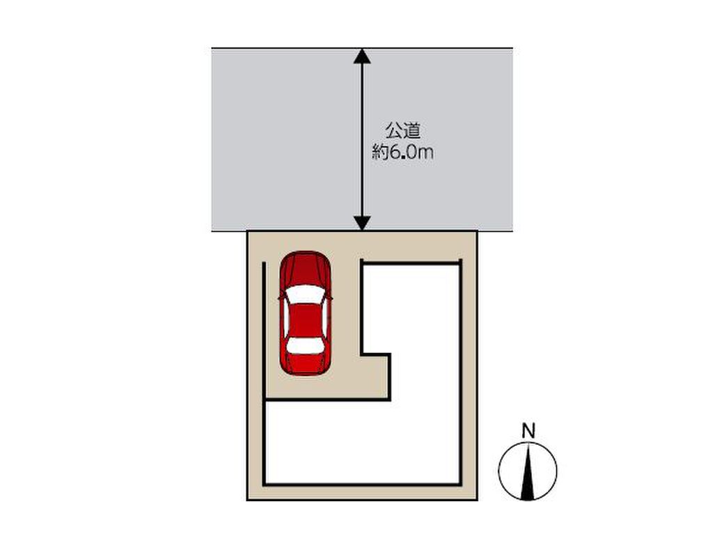 | 駐車場 | 0台 ~ 1台(車種による。) | 道路の幅員 | 北側6m |
