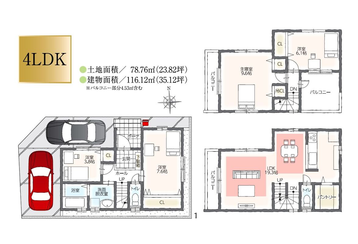 | 建物面積 | 116.12m2 | 土地面積 | 78.76m2 |