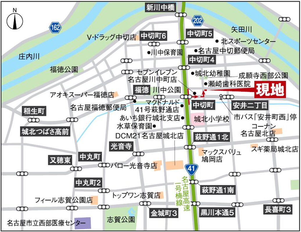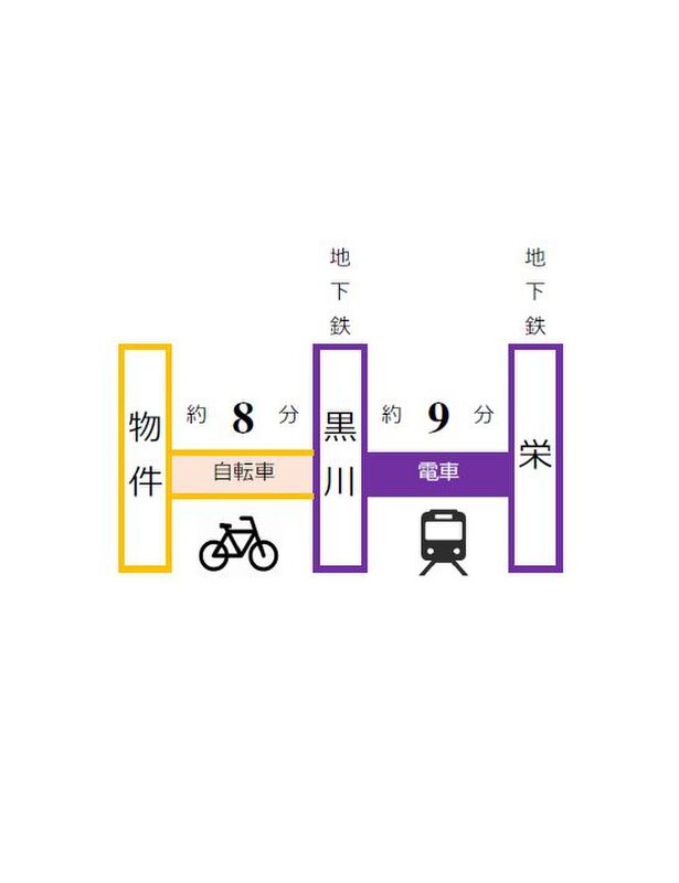 名古屋市営名城線「黒川」駅 徒歩24分 名古屋市営上飯田線「上飯田」駅 徒歩28分 名古屋市営鶴舞線「庄内通」駅 徒歩32分 |
