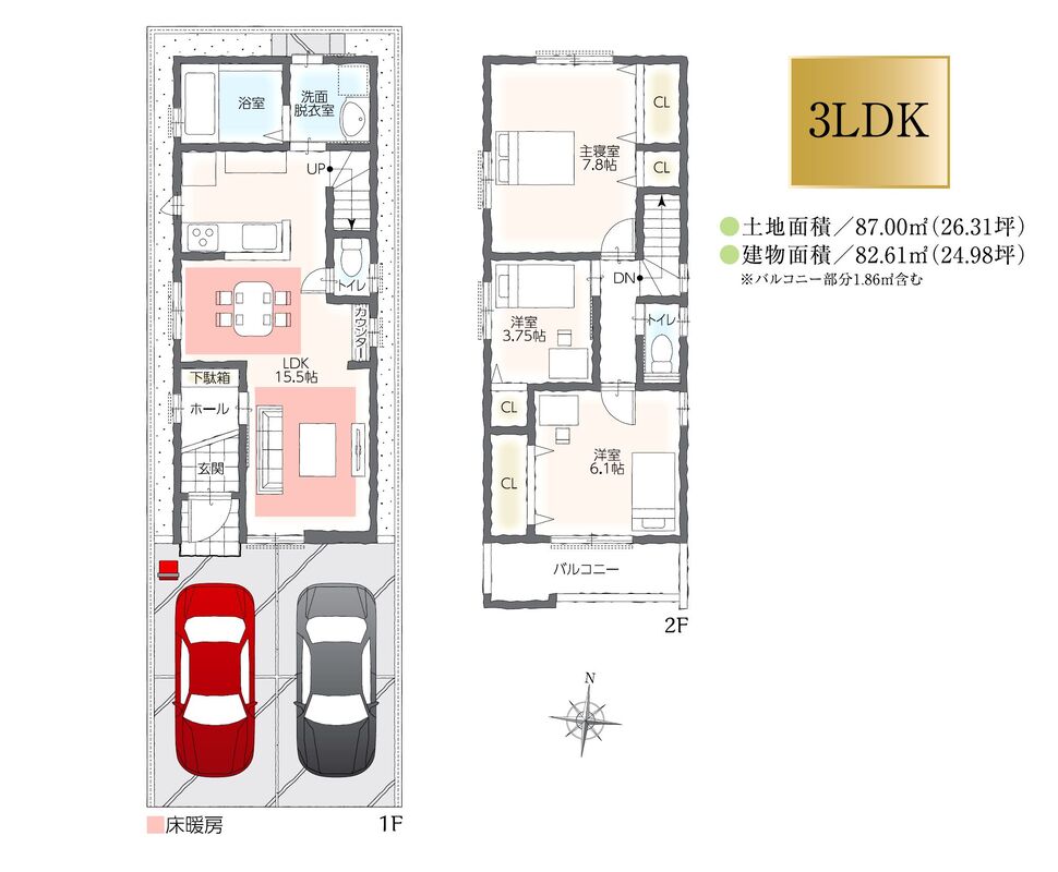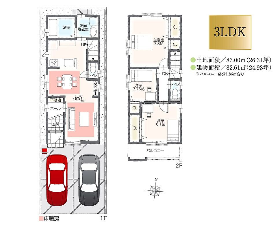 | 建物面積 | 82.61m2 | 土地面積 | 87.00m2 |