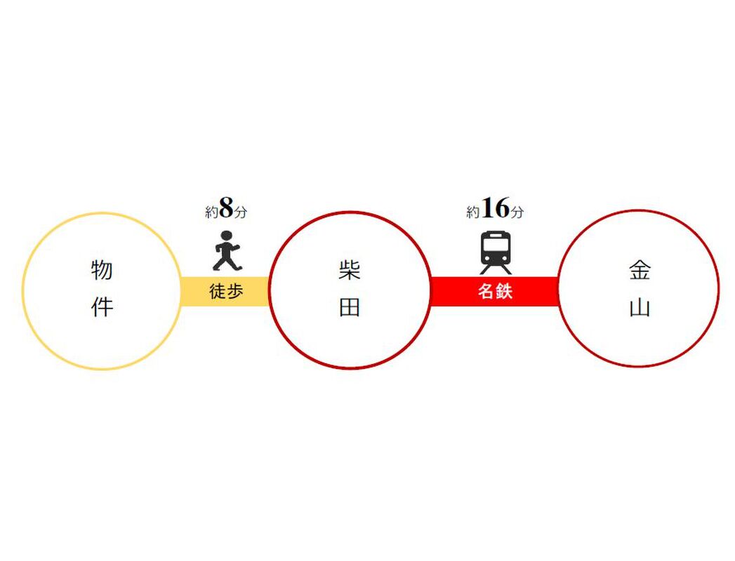 名鉄常滑線「柴田」駅 徒歩8分 名鉄常滑線「大同町」駅 徒歩14分 名鉄常滑線「名和」駅 徒歩25分 |