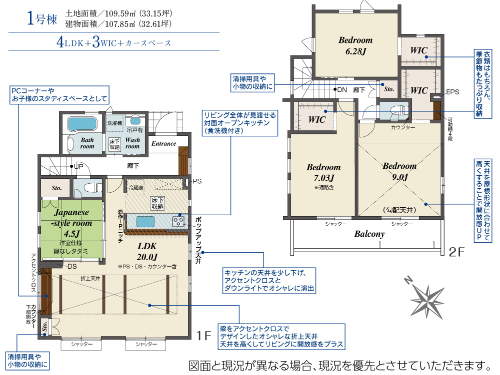| 建物面積 | 107.85m2(約32.62坪) | 土地面積 | 109.59m2(約33.15坪) |