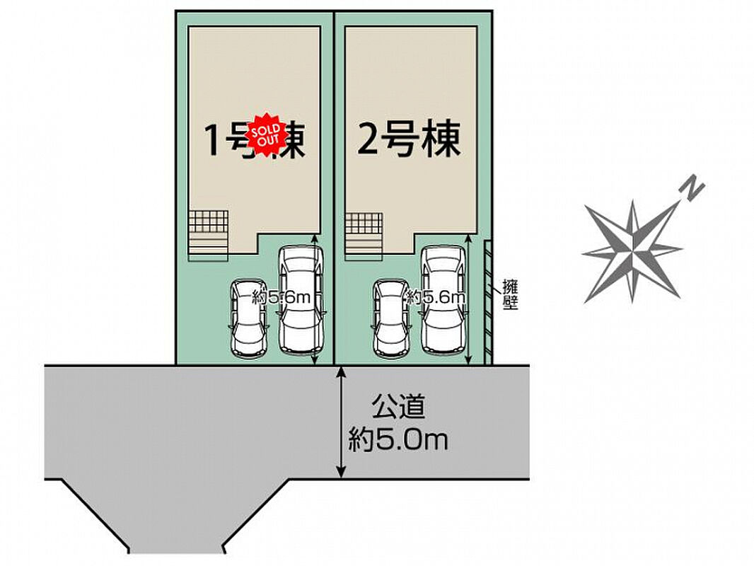| 駐車場 | 2台 | 道路の幅員 | 南東5.0m公道 |