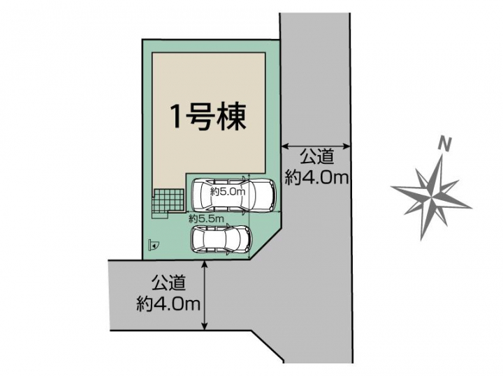 | 駐車場 | 2台 | 道路の幅員 | 東4.0m公道、南4.0m公道 |