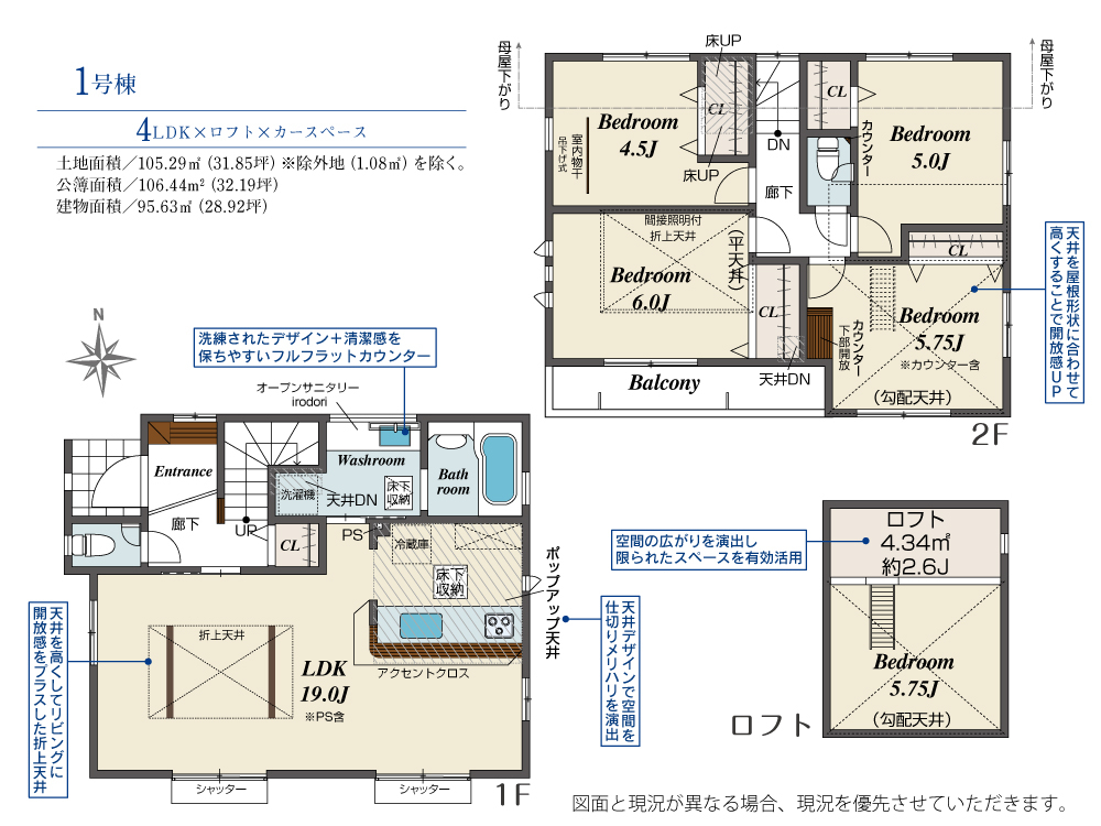 | 建物面積 | 95.63m2(約28.92坪) | 土地面積 | 105.29m2(約31.85坪) |